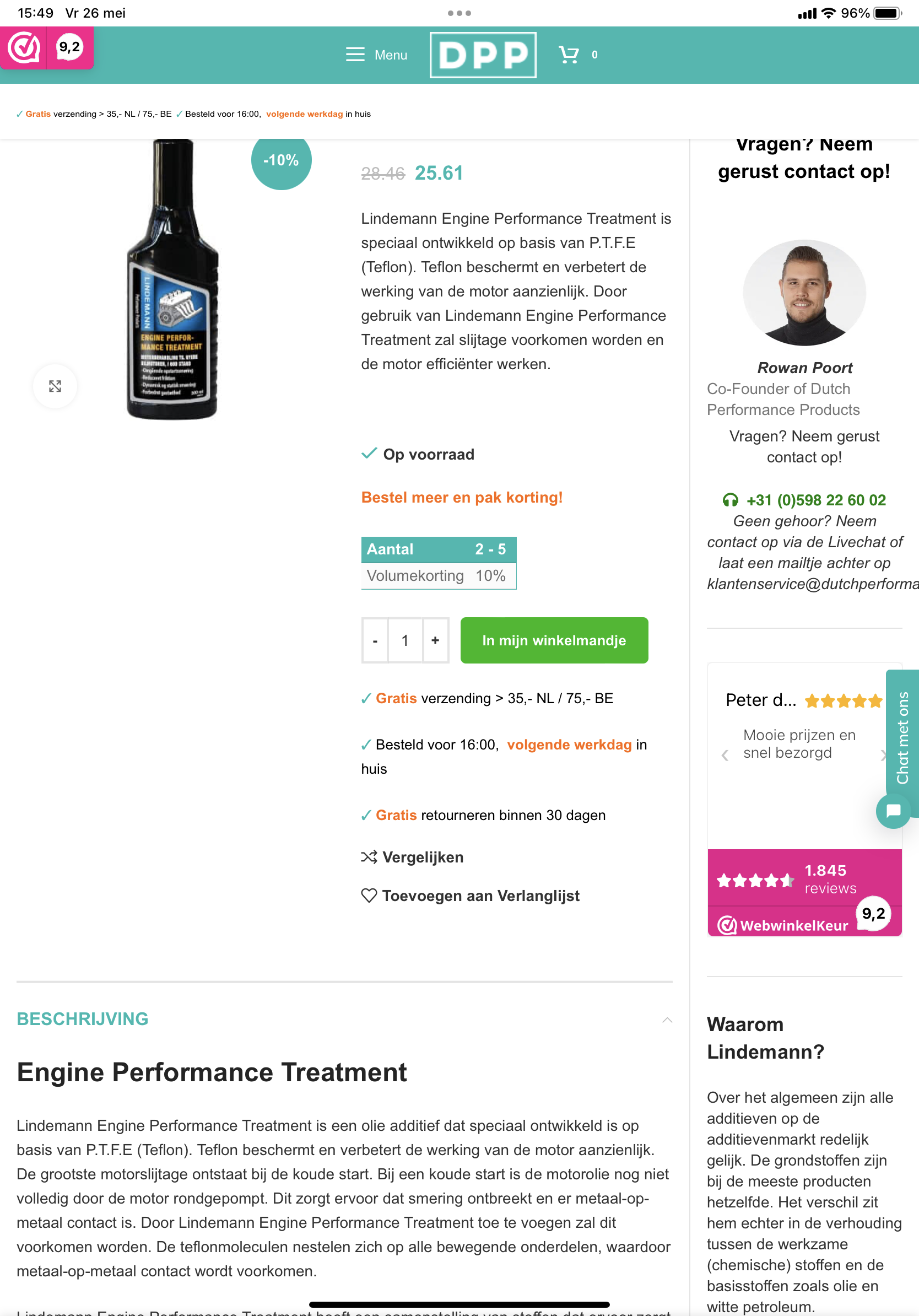 Ik kwam op internet Lindemann engine performance treatment