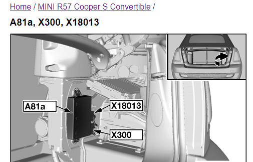 De pdc-module zit rechts in de kofferbak bij een R57, achter de bekleding. En dan verticaal gemonteerd op het rechtopstaande stuk plaatwerk, wat weer parallel zit aan de achterbank. (Hopelijk snap je deze ingewikkelde uitleg...)
