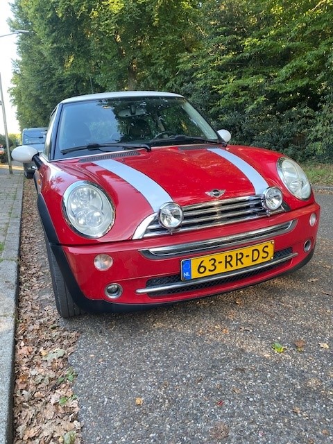 Een jaar of 8 geleden, hadden wij een Mini Cooper (R50) uit 2005. Rood, met een wit dak, witte spiegelkappen, striping op de neus en witte 16" velgen. Sinds vorig week, dus 8 jaar later, hebben wij weer een Mini Cooper (R50) uit 2005, wederom de wit rood combinatie, maar dit keer met de 17"-velgen, de witte strepen zijn van de neus gehaald en de auto heeft een tonnetje meer gereden.