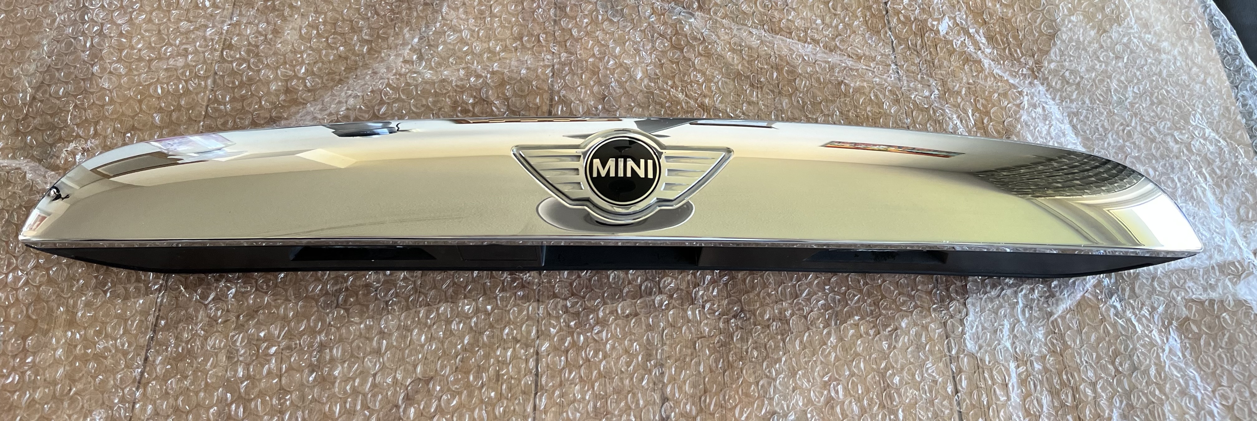 Chromen achterklepgreep van een F56 mini cooper. In goede werkende conditie. De elektronica werkt en het chroom ziet er netjes uit.