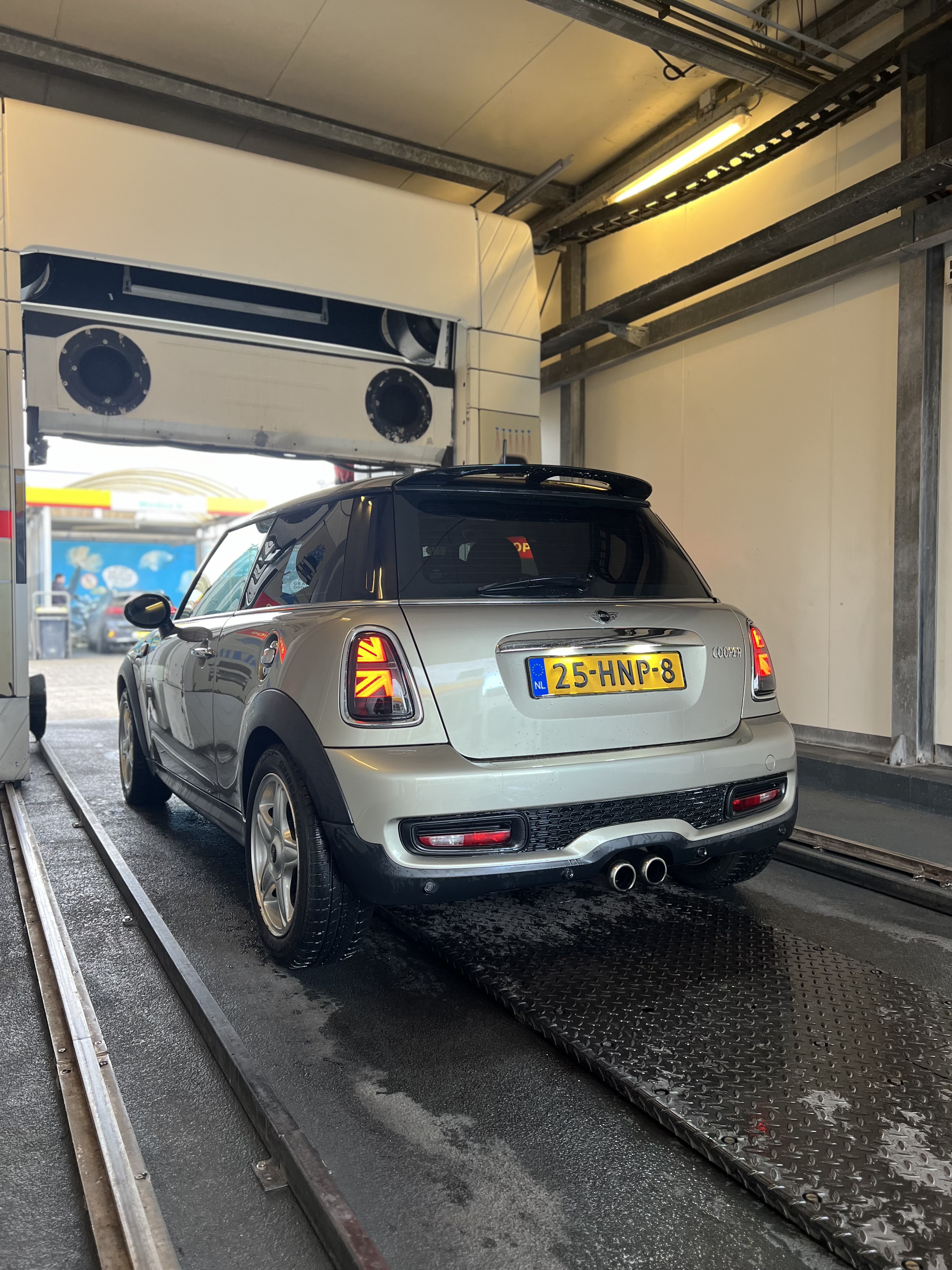 Cooper S achterbumper , cooper s einddemper , cooper s dakspoiler , cooper s pedalen set , mayfair velgen , hot chocolate lederen interieur , piano black deurpanelen , piano black dash delen , en compleet zwarte hemel (moet ik nog monteren) , achterste 3 ruiten getint. en gisteren de knoop. doorgehakt en een android radio gekocht met wireless CarPlay :D