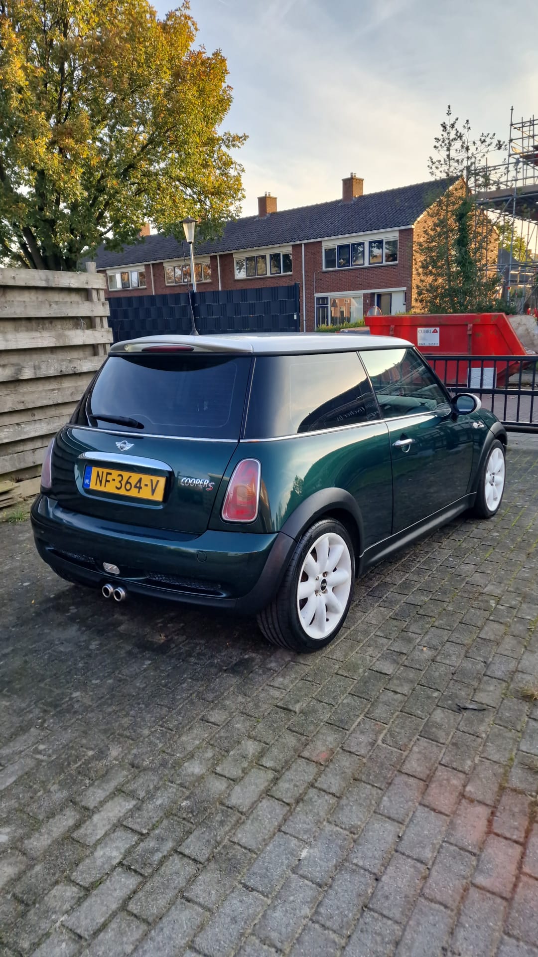 Mooie British Racing Green Cooper S, veel plezier en veilige kilometers gewenst (en poetsen van de witte wielen